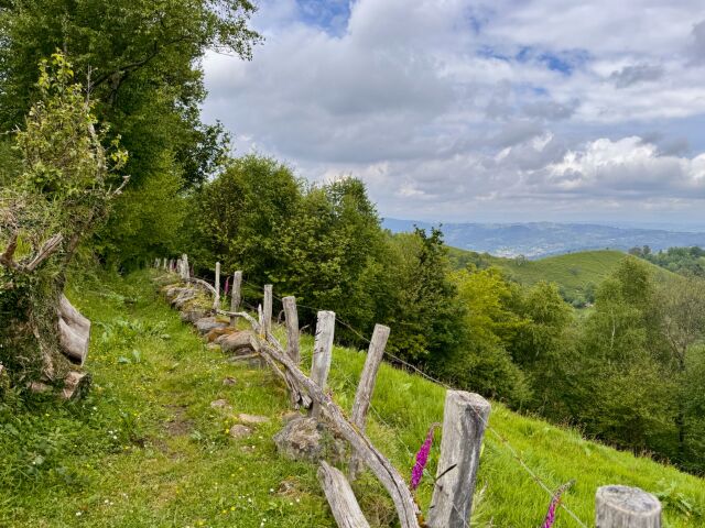 Después de cruzar ante las viejas escuelas del pueblo, saldremos en travesía por la ladera del Picu Rondiz (787 m) para pasar por el caserío de La Tixera y seguir la pista que nos lleva al Mayáu Miguel, una espléndida campera que fue zona tradicional de pasto del ganado, el lugar ideal para hacer un alto en el camino y descansar sobre sus verdes praderas. Desde casi cualquier punto de la ruta que venimos recorriendo hasta el Mayáu, las vistas al Valle de Samuño, la ciudad de Langreo y las montañas cantábricas son espectaculares.